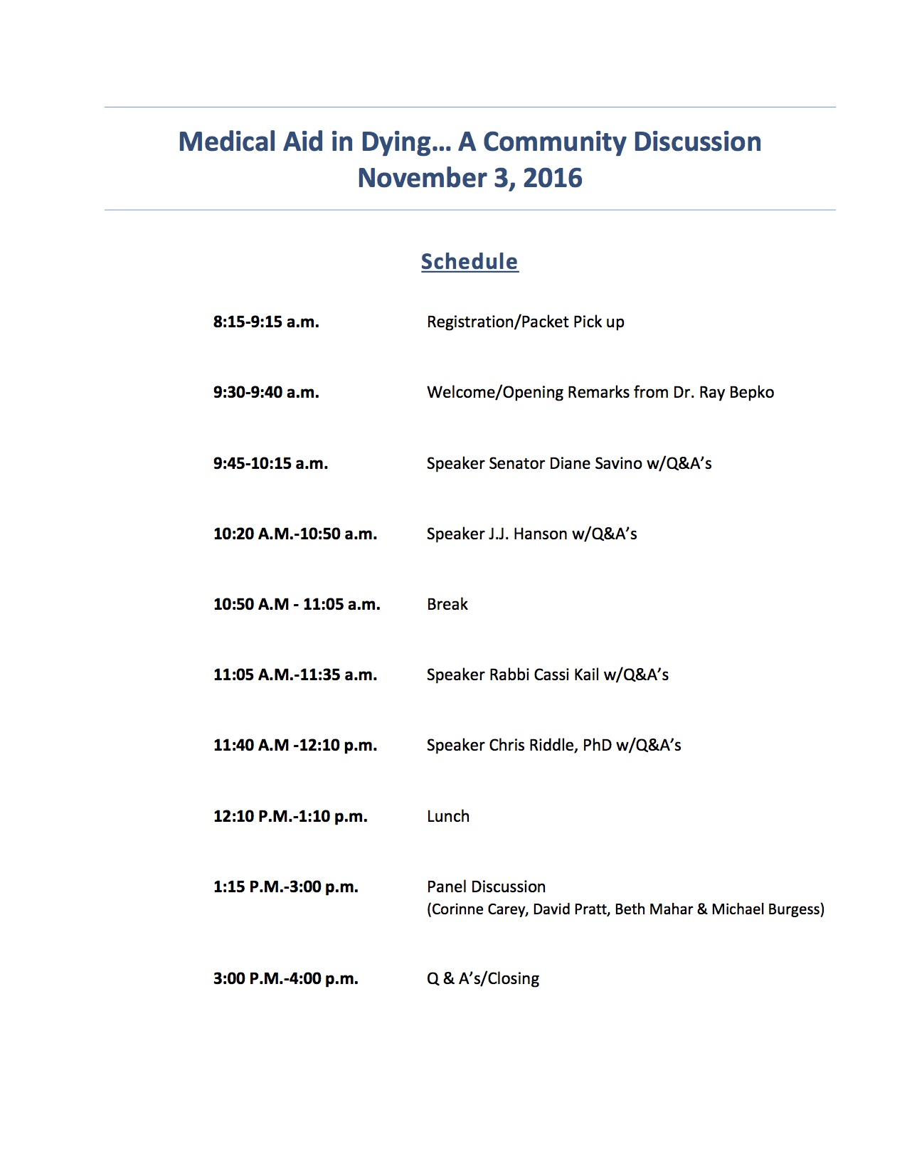 The Applied Ethics Institute co-organized a conference on Medical Aid in Dying at Mohawk Valley Community College on November 3, 2016.